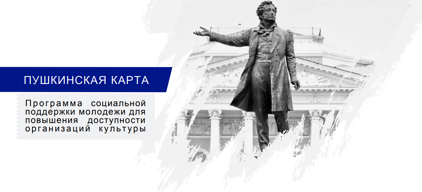 Программа «Пушкинской карты» начала действовать с 1 сентября 2021 года. Она позволяет студентам и школьникам посещать за счёт государства некоторые театры, музей, выставки, экскурсии и другие культурные мероприятия. Цель программы — популяризация среди молодежи культурных мероприятий по всей стране, приобщение молодёжи к искусству.